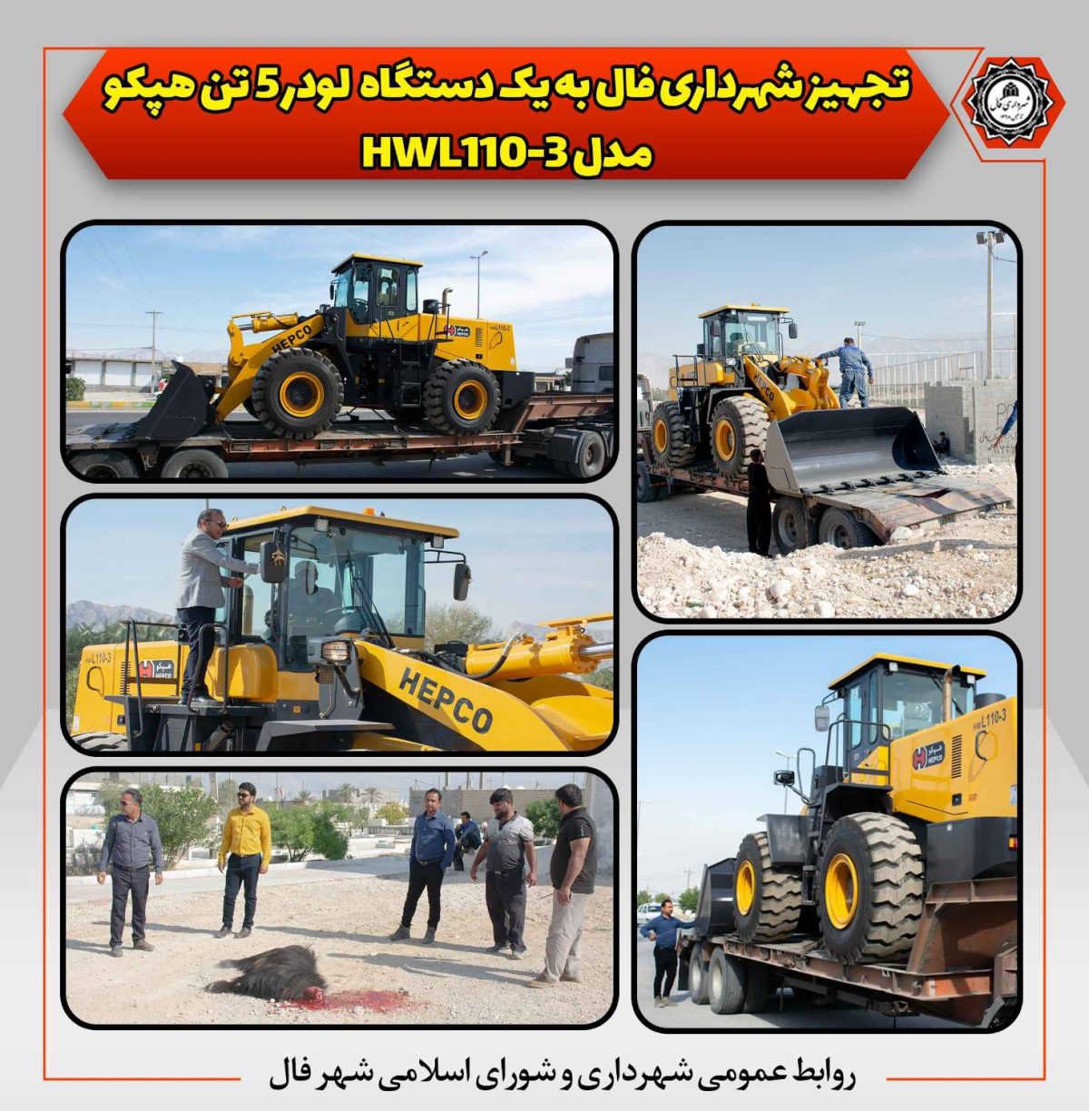 مهندس زارعی، شهردار فال: در راستای ایجاد درآمد پایدار و تجهیز شهرداری به ماشین آلات عمرانی و خدماتی ، با مصوبه شورای محترم اسلامی شهر فال ، یک دستگاه لودر هپکو ۵ تن مدل HWL110-3 با گیربکس برقی(اتومات) خریداری و به چرخه خدمت رسانی به شهروندان اضافه شد.